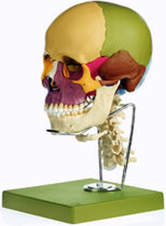 natürliche Größe, aus SOMSO-Plast®, nach Prof. Dr. Dr. med. J. W. Rohen, Anatomisches Institut der Universität Erlangen. Ausführung wieQS 8/3, jedoch mit Halswirbelsäule und Zungenbein.