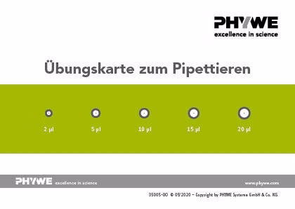 With the pipetting practice card you can repeatedly practice and control the handling of a microliter pipette without much preparation.