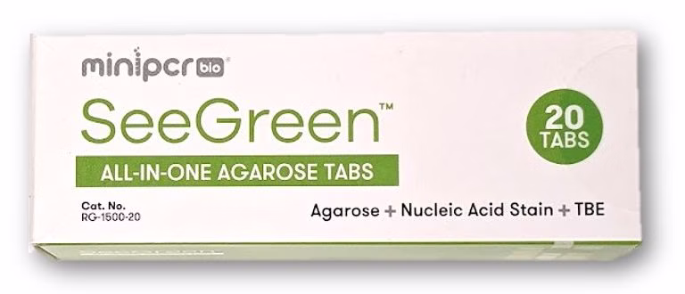 - Each tablet contains 0.4 g agarose, TBE-salt and SeeGreen™ fluorescent dye