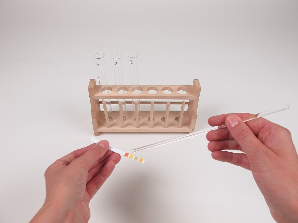 This experiment demonstrates how the characteristics of (chemical) substances can be examined. The students work with substances that they know from their everyday life and they determine the pH value or character (acidic, neutral or alkaline) of various solutions. For this purpose, the pH value of aqueous solutions (e.g. vinegar or common salt) is determined with the aid of a pH test stick.