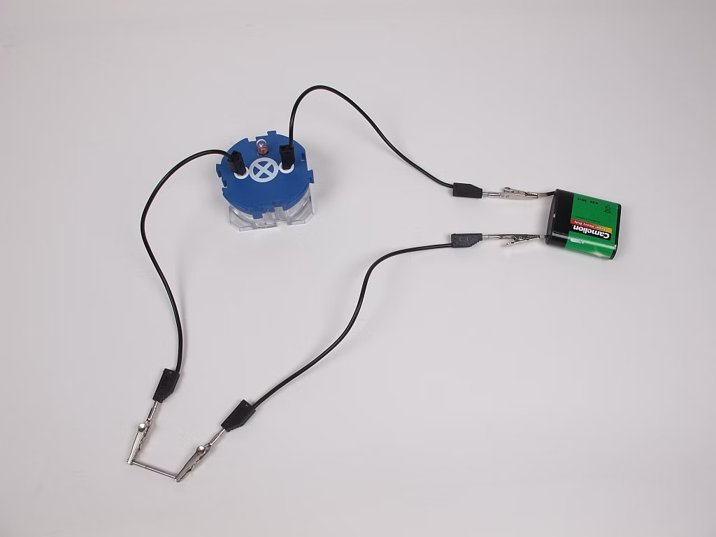 The students examine various solids and liquids in terms of their electric conductivity and notice that some materials conduct electricity while others do not. They conclude that electric conductivity depends on the material. In addition, they learn that non-conducting liquids can become conductive when specific substances are dissolved in these liquids.