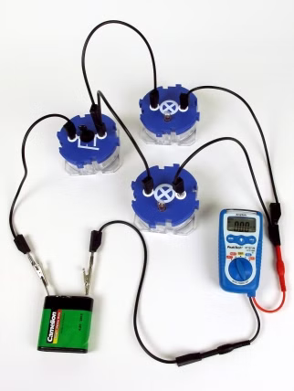 The students will observe an electric circuit with two light bulbs connected in series as well as in parallel. They will determine that a connection in series requires all consumers intact whereas a consumer in a parallel connection is not affected by the malfunction of another. They will conclude that the set-up of a circuit is essential to the behaviour of the connected consumers and that both set-ups, a connection in parallel as well as in series, reveal different upsides and downsides regarding the intended purposes.