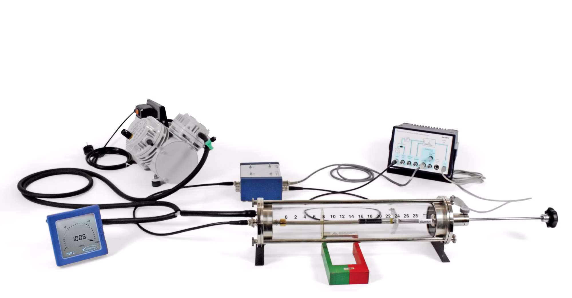 - Transparent glass container with perfect visibility of the whole setup and good vacuum conditions, used in several experiments