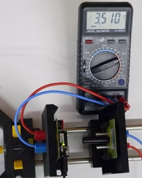 In order to be able to set up in such a way that all the slides fit between the light sensor and the LED without having to shift the mounts, the 5 slides are first held between the light sensor and the tube on the LED and the mounts are pushed together accordingly.