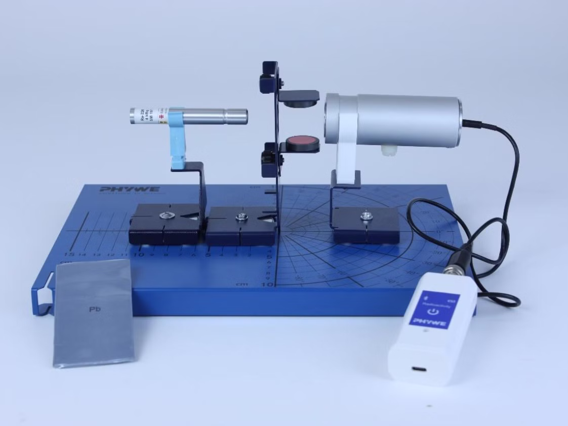 The students study the deflection of gamma rays in a magnetic field by measuring the pulse rate with the Geiger-Müller counter tube for radiation through a magnetic field, as well as without a magnetic field.