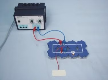 Place the solar cell, with the white side (platen) looking up, on the table and observe what happens with each of the possible polarities of the DC circuit.