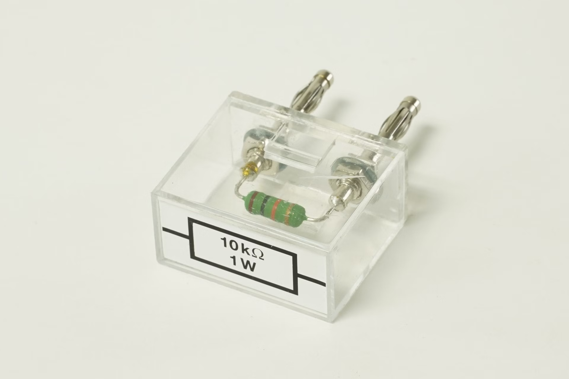 Carbon resistor in plastic housing.