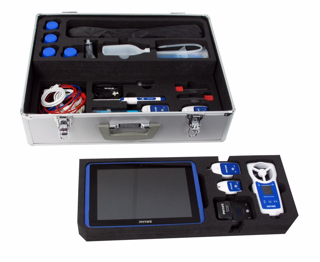 Ya sea en el aula, al aire libre o en jornadas de proyectos: en este robusto maletín de aluminio, siempre encontrará el dispositivo adecuado para llevar a cabo fascinantes experimentos con grupos escolares.