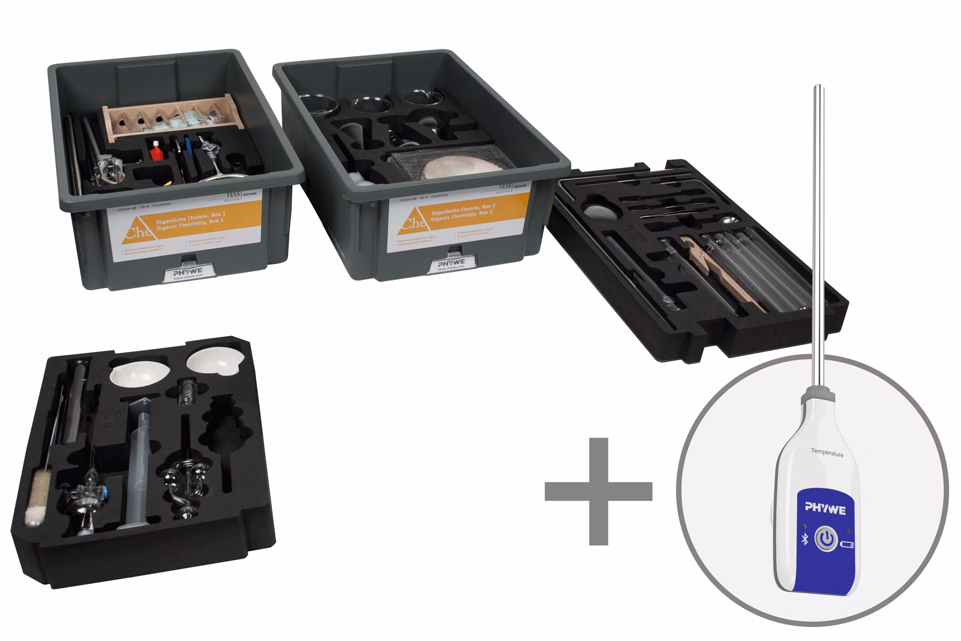 - Complete equipment set: Minimal preparation time and easy realisation of the experiments thanks to the digital experiment descriptions included as a QR code.