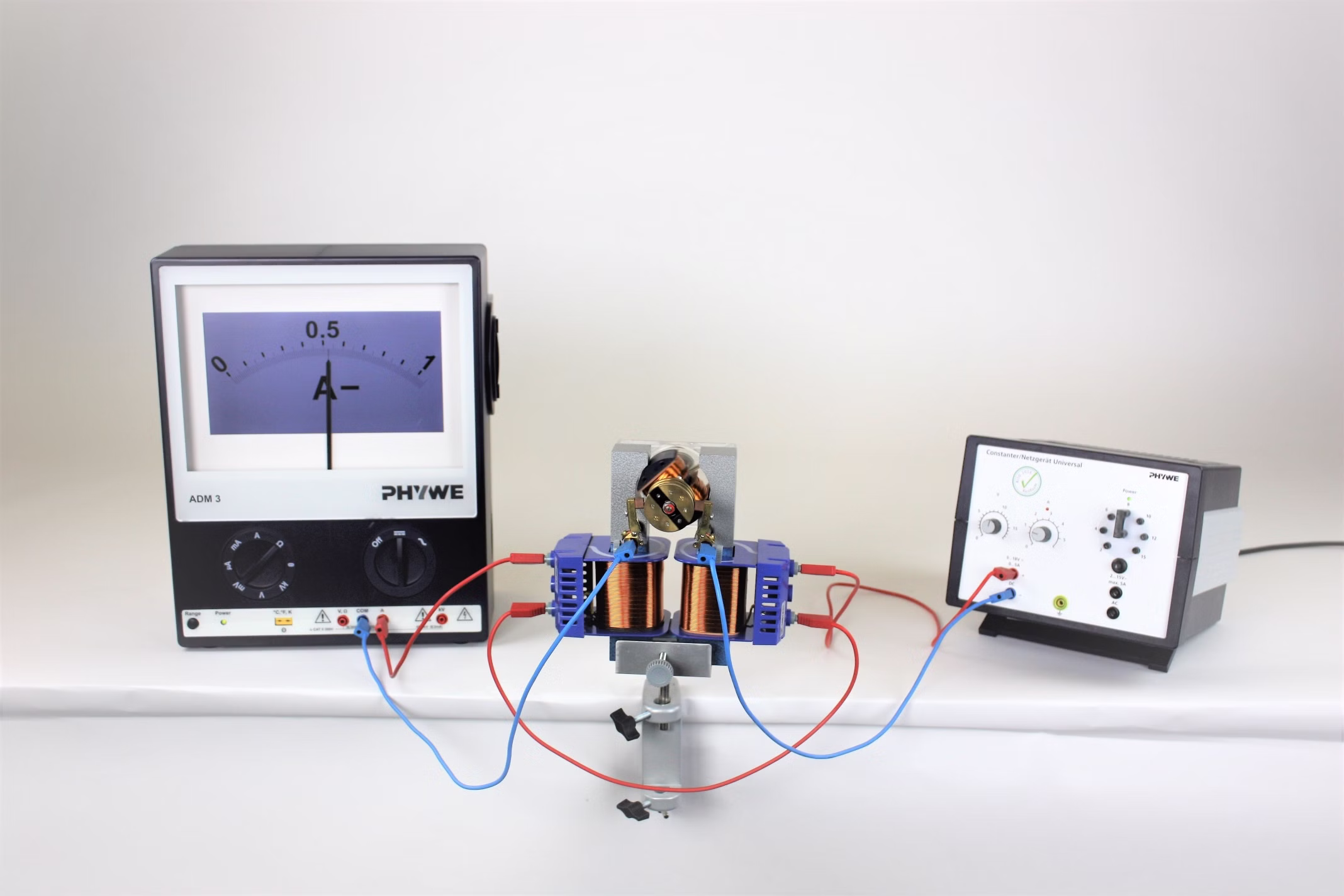 An electromotor can also be operated with an electromagnet as a field magnet. If armature coils and field coils are connected in series, then this is called a series-wound motor. The properties of this motor are studied by observing the direction of rotation and measuring the electric current.