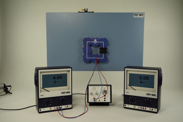 Principle A solar cell consists of a p-doped and an n-doped layer. When light falls on them, free charge carriers are created, which are forced outwards by the electric field and thus generate a voltage. Due to this structure, the orientation of the voltage is clearly determined, which makes the following experiment possible. In this experiment, a voltage is applied to the darkened solar cell to show in a simple example that the solar cell has the properties of a diode. In an additional partial experiment, the dark characteristic of the solar cell can then be determined. Benefits
