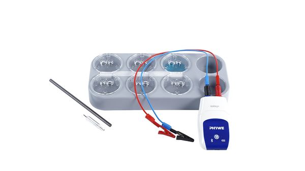 Technical data Preparation of a simplified standard hydrogen electrode and measurement of some standard potentials with Cobra SMARTsenseArticle no: P7400869 ![]() Principle A relative electrical potential can be assigned to each metal and other redox pairs if it is combined with a constant reference electrode in a galvanic cell. The so-called standard hydrogen electrode (SHE) was defined as the international reference electrode for this purpose. In the present experiment, a simplified form of this electrode is constructed and the redox potentials of various metals are determined experimentally. For this purpose, a platinum electrode is charged with hydrogen gas by electrolysis of a sulphuric acid solution. This hydrogen electrode is then successively connected to four half cells of different metals to form galvanic cells. The resulting voltages are measured and classified in a voltage series according to their magnitude and sign. The aim of the experiment is to illustrate the principle and structure of the standard hydrogen electrode and to deepen the understanding of electrochemical potentials. Tasks